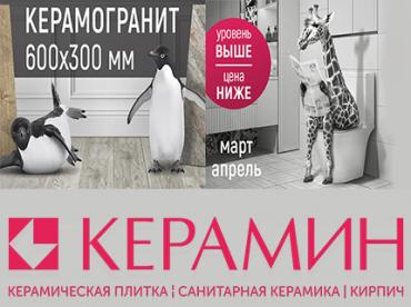 Керамогранит, премиальная сантехника и кирпич со скидками в сети салонов "Керамин"!